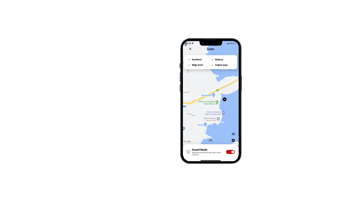 Mikäli moottoria yritetään varastaa soi veneen hälytyssireeni minuutin välein. Jos vene varastetaan tai vaikkapa irtoaa laiturista sen sijaintitieto näytetään sovelluksessa 50 metrin tarkkuudella.