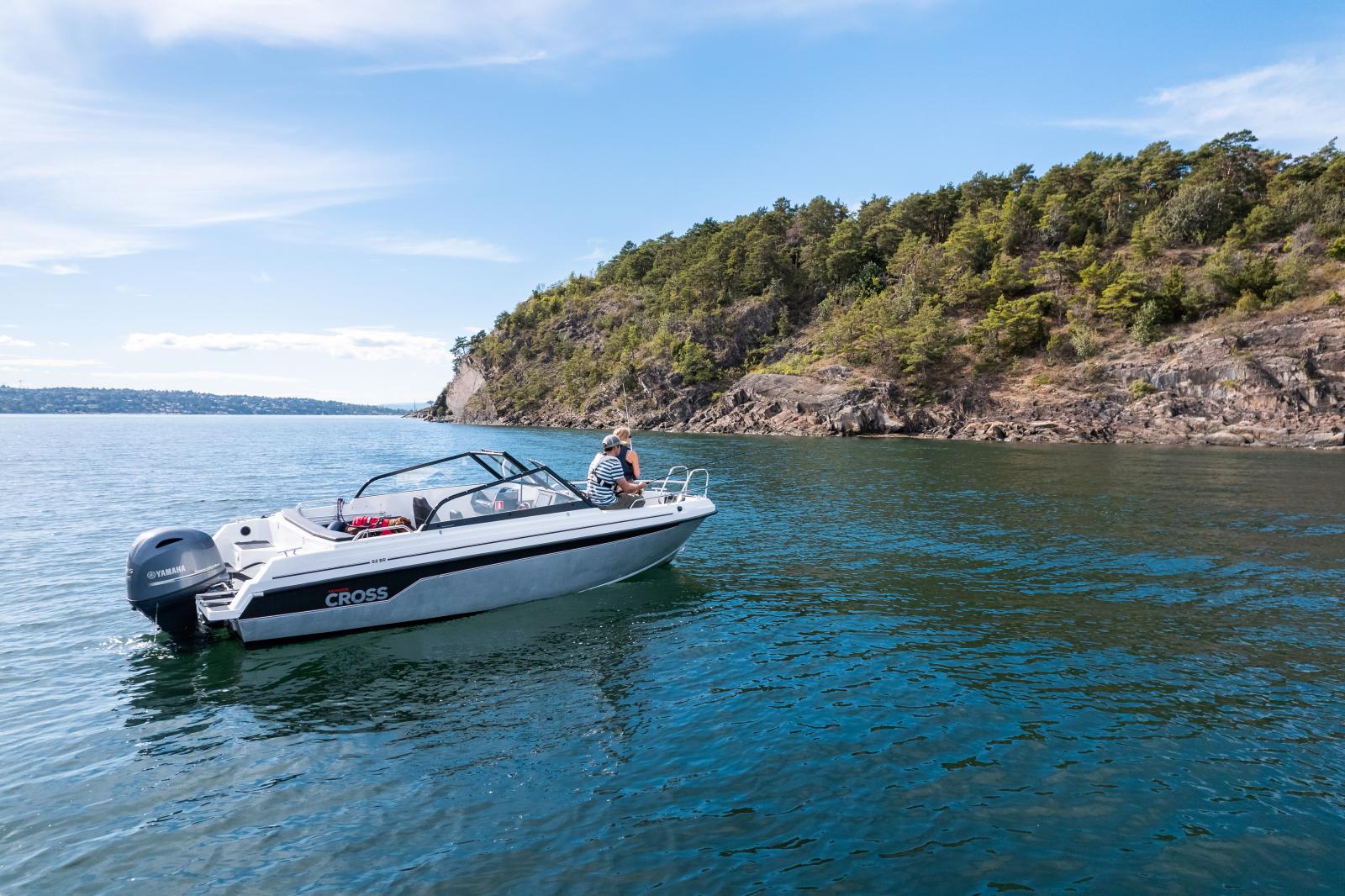 Cross 62 BR tar hele familien med på sommeropplevelsene. Et velkjørende aluminiumsskrog på over 6 meter sørger for at det blir massevis av sitteplass i ly av vindskjermen. Bak de to solide sportsstolene finner du en rommelig U-sofa med behagelig sittekomfort selv på lengre turer. Dermed kan inntil syv personer dra på dagstur, ankre opp i en uthavn, eller legge til for lunsj underveis. Rikelig oppbevaringsplass gjør at du får med alt som trengs til turen.